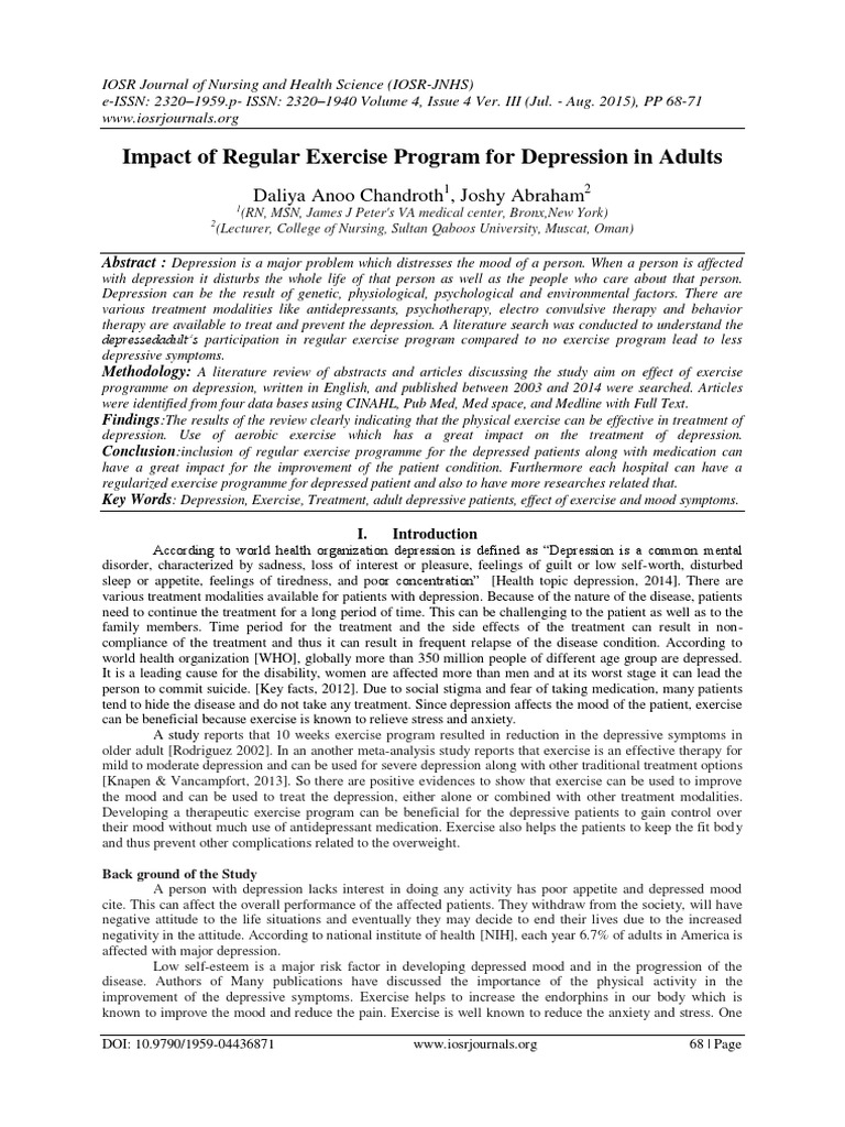 As well as taking control of your life, you are also getting order. It's a well known fact that exercise is good for you physically. People's genomes, their medical histories of depression and depressive symptoms and how much physical. Exercise can help in improving the body immunity, reduce stress and anxiety levels or even reduce depression to a great extent. The study by michigan state university found that exercises can quickly elevate a depressed mood, and the patients should create a comprehensive exercise plan. Which term describes medical conditions that require diagnosis and treatments just like any physical illness or injury? Regular exercise helps to lower weight, help your body use insulin correctly, lower cholesterol and. And to drive my point home, according to the mayo clinic, exercise helps prevent and improve a number of health problems, including high blood pressure, diabetes, and arthritis, which is wonderful. Dopamine can also impact your appetite and sleep cycles, both of which are usually compromised in those with depression. Regular exercise can boost your mood if you have depression, and it's especially useful for people with mild to moderate depression. These chemicals or hormones, often help boost the brain towards a more positive state, thus helping to fight depression on a massive scale. Depression is also associated with lower. Katherine rose for the observer.